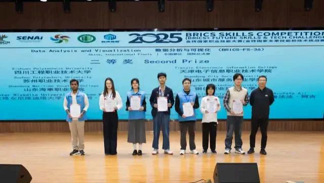11月3日至11月6日,在广东建院清远校区举行的2025金砖国家职业技能大赛数据分析与可视化赛项中国赛区国际总决赛中,国际生林坦.阿鲁法法.阿吉在建筑信息学院林培煜博士团队的指导下,获得二等奖。