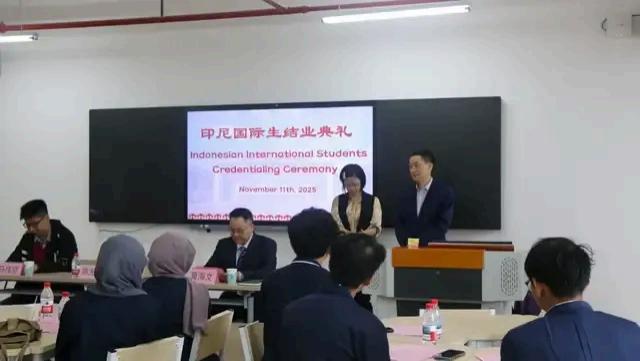2025年11月11日,广东建设职业技术学院清远校区举行印尼数字媒体专业国际生项目结业典礼。广东建院副校长陈光荣、国际学院院长莫海文等出席典礼并致辞,为来自印尼的15名国际生颁发结业证书。