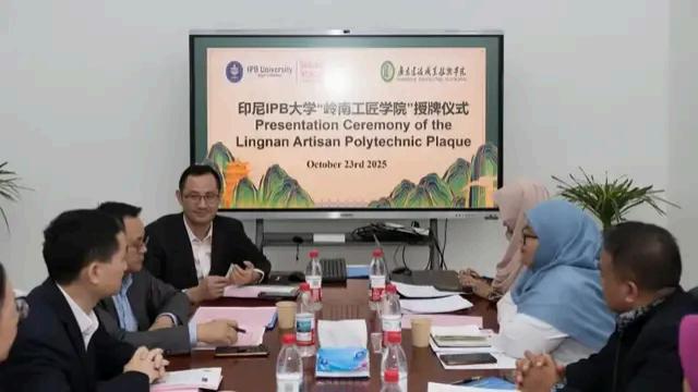 在这批印尼交换生学习期间,10月23日,广东建院与印尼IPB大学共建“岭南工匠学院”,双方围绕软件技术(工程)、数字媒体技术、计算机技术等三个专业领域的优势,就“岭南工匠学院”建设项目、合作办学、联合人才培养及师资培训等合作事项进行深入洽谈对接。